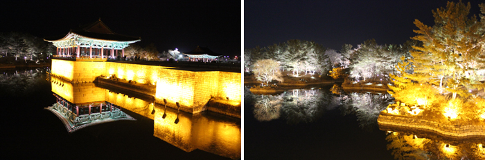 新羅王宮の中にあった巨大な蓮池で、幻想的なライトで夜訪れると神秘的で美しい風景が観賞できます。10年に渡り水中での発掘作業を通して出土された遺物は、