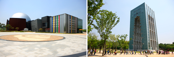 世界各国のさまざまな文化を体験する「慶州世界文化エキスポ」の開催を記念して造られた公園で、新羅文化歴史館や3Dアニメーションワールド、世界化石博物館などがあります。ここにある「慶州タワー」は、 「黃龍寺9層木塔」を陰刻化してつくられたもので、新羅時代と21世紀が共存する慶州の新しいランドマークとなっています。