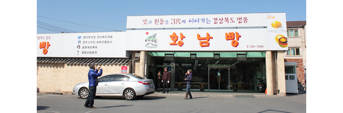 1939年から3代を経て70年余り味と伝統を引き継いでいる皇南パンは、慶州の名品です。柔らかくふかふかとしたパンと淡白な味のあんは全国的にも評判です。何よりも全過程を徹底した職人精神を基盤に手作業で作られており、お店に行くと、パンを作る過程が直に見られるという点も魅力です。